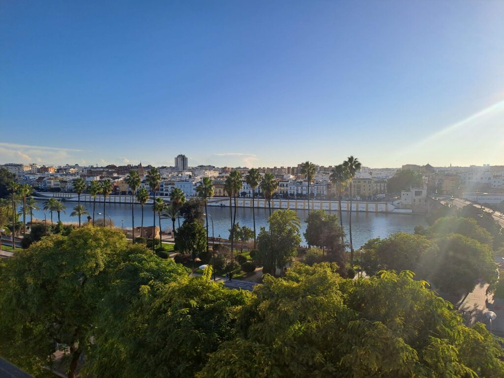 Uitzicht vanaf dakterras Ático op de Guadalquivir en de Calle Betis in Triana
