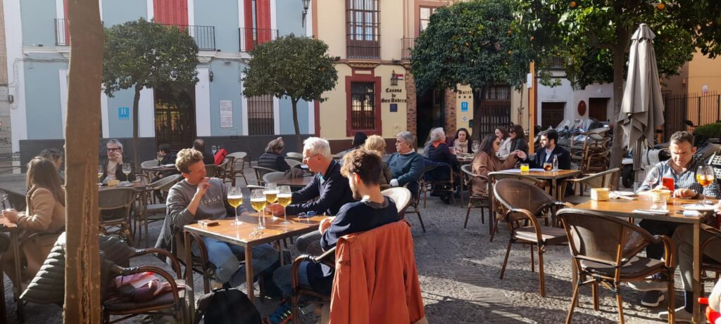 Sevillanen eten en drinken het liefste in de buitenlucht en met het aangename Sevillaanse klimaat gaat dat gewoon het hele jaar door. Met een pilsje van Cruzcampo, het Sevillaanse huismerk, fijn gezelschap en een aangenaam zonnetje is de gemiddelde Sevillaan dik tevreden – en jij ook vermoed ik. Vooral veel gezelligheid tref je aan op de Sevillaanse terrassen. Niks leukers dan je te laten verbazen door de soms wat theatrale houding van de Sevillanen. Maar waar vind je nu de leukste terrassen van Sevilla?